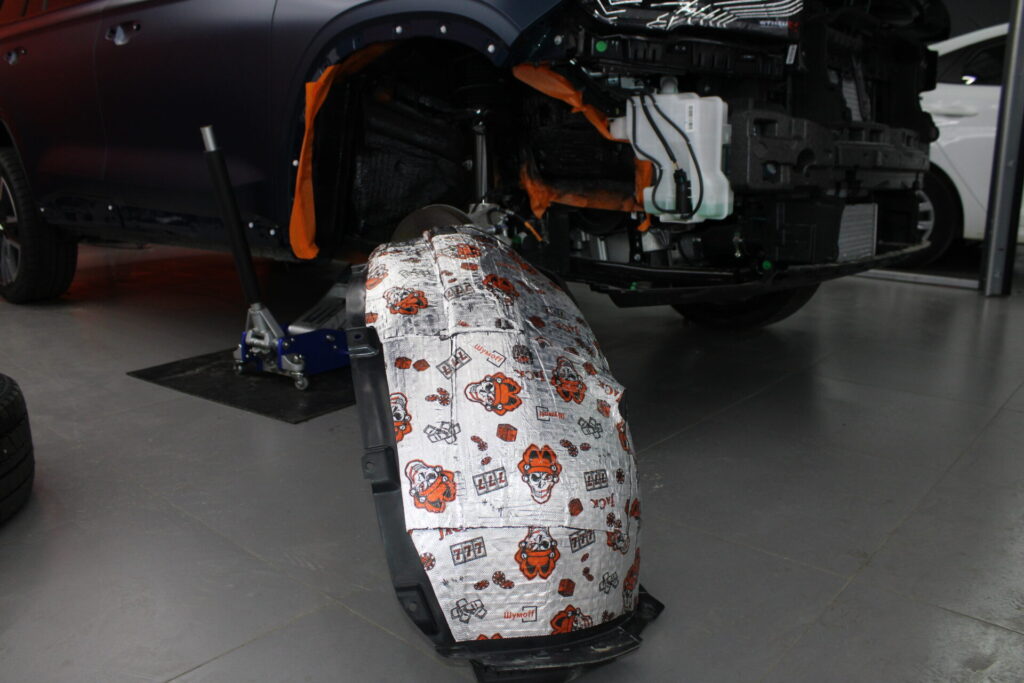 Шумоизоляция колесных арок, дверей и капота GEELY MONJARO.