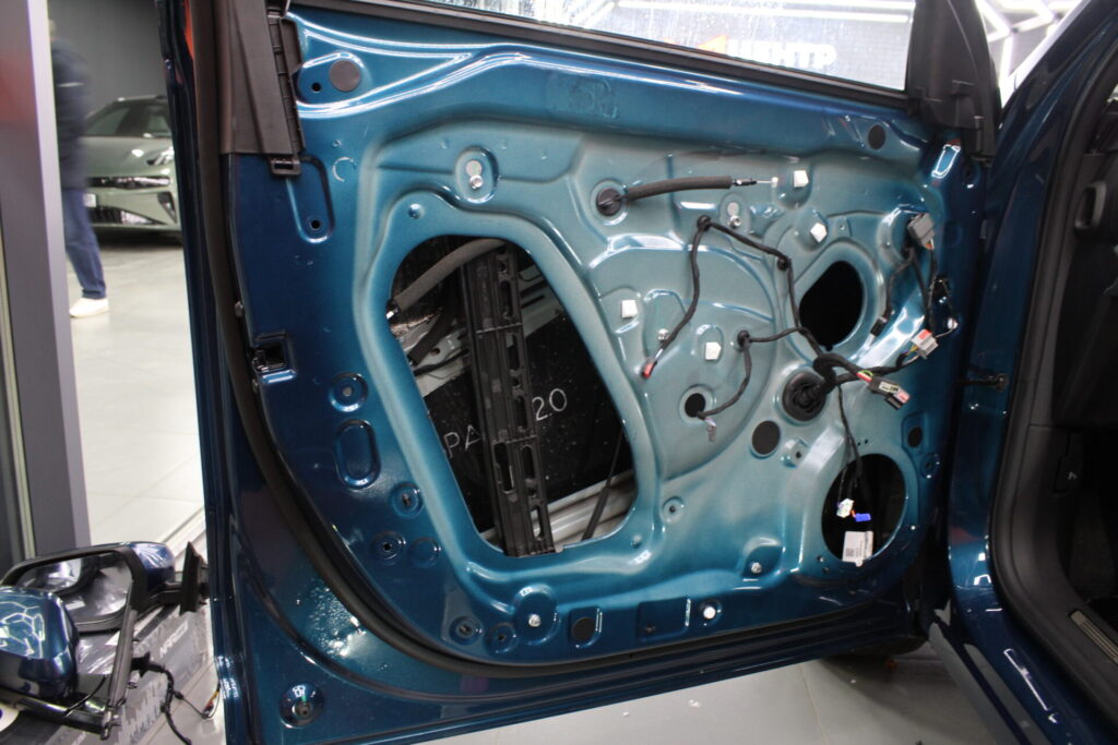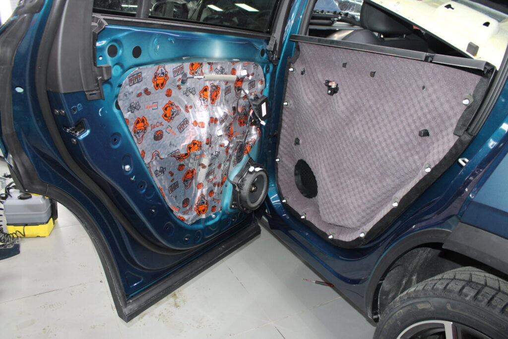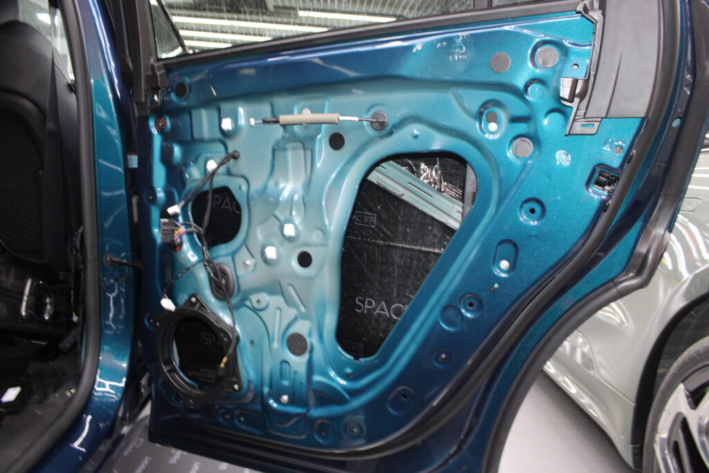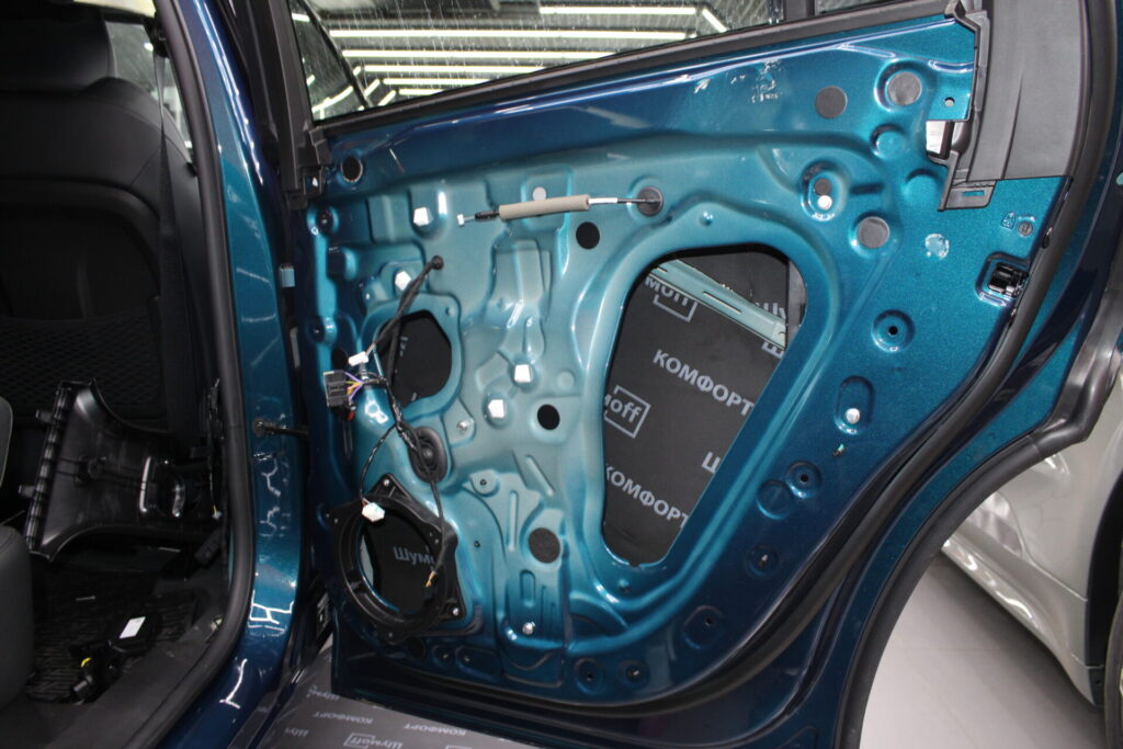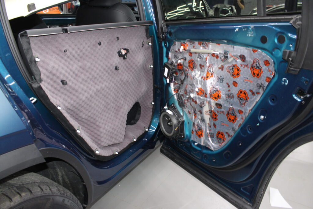 -После шумоизоляции дверей кратно улучшится звучание даже штатной акустики. Это происходит потому, что обрабатывая виброизоляцией металлические поверхности, мы делаем их жестче, а также закрывая внутреннюю стенку с тех. отверстиями вибриозоляцией, мы по сути имитируем закрытый акустический короб.